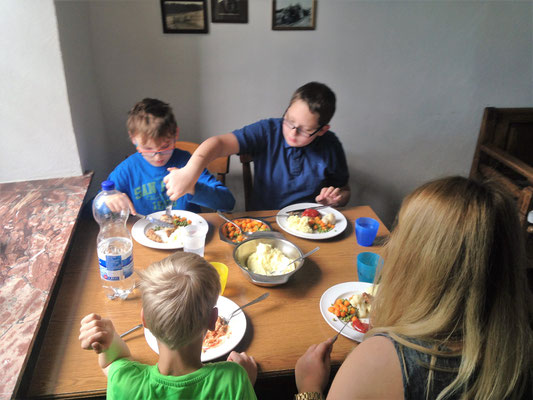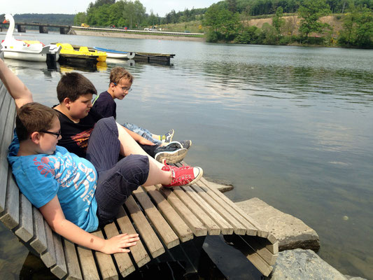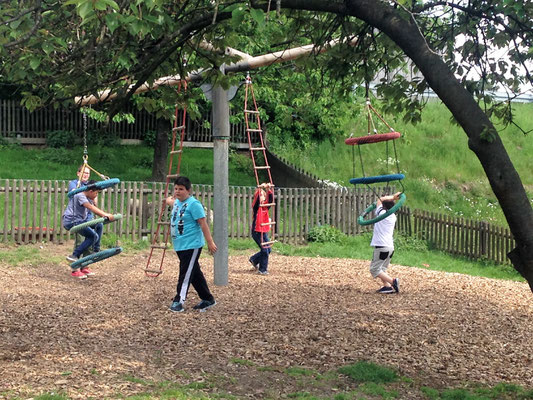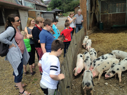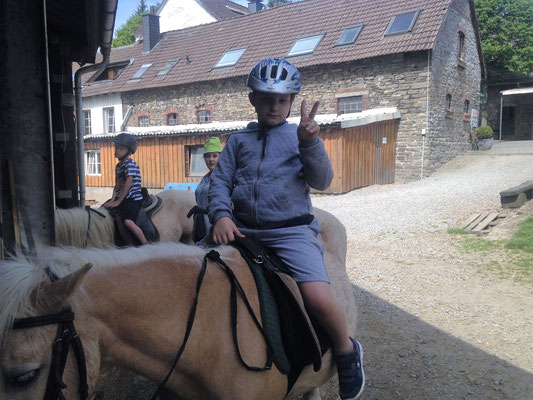 Nach einer ereignisreichen Projektwoche wartete schon der nächste Höhepunkt auf uns: Endlich fuhren wir zur Klassenfahrt ins Sauerland. Los ging es am Montagmorgen. Nachdem wir alle Koffer eingeladen hatten, fuhren wir mit unseren Schulbussen zum Schultenhof in Balve. Wir bezogen die Zimmer und anschließend noch die Betten, dann wartete auch schon ein leckeres Mittagessen auf uns. Anschließend erkundeten wir den Bauernhof: Wir streichelten Schweine mit ihren kleinen Ferkelchen, Pferde, Kühe, Hasen und den großen Hofhund. Wir entdeckten auch das große Trampolin und den Spielplatz. Nachmittags konnten wir auch noch schwimmen. Abends haben wir ein kleines Lagerfeuer gemacht und Stockbrot über dem Feuer gedreht. So fielen wir dann abends erschöpft in die Betten. Nachdem wir uns am nächsten Morgen mit einem guten Frühstück gestärkt hatten, wanderten wir den Hausberg hoch bis zum großen Windrad und hatten von dort oben einen schönen Rundblick über das Sauerland. Unten am Bauernhof warteten dann schon die Pferde und fast alle haben sich getraut, auf den Pferden ein paar Runden zu reiten. Nach dem Mittagessen und einer kurzen Pause sind wir dann zum Sorpesee gefahren. Wir sind um den ganzen Sorpesee gelaufen, von Spielplatz zu Spielplatz (okay, es war nur das Vorbecken vom See). Es war ganz schön weit und am Ende haben wir uns mit einem Eis belohnt. Nach dem Abendessen und Zeit auf dem Trampolin und dem Spielplatz mussten wir dann doch schon ein wenig die Koffer packen, denn am nächsten Morgen fuhren wir nach dem Frühstück wieder nach Hause und ein langes Wochenende wartete. Besonders gut gefallen haben uns das Reiten, das große Trampolin, der Spielplatz und dass die Sonne geschienen hat.