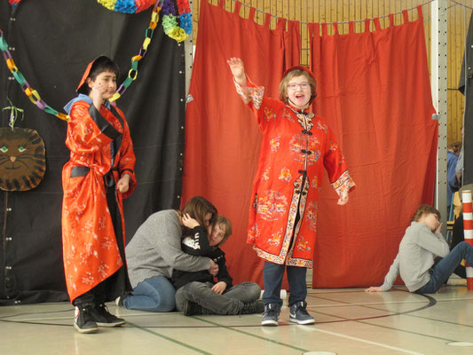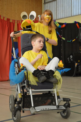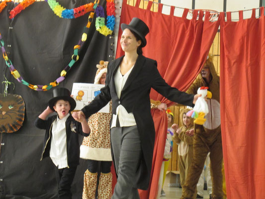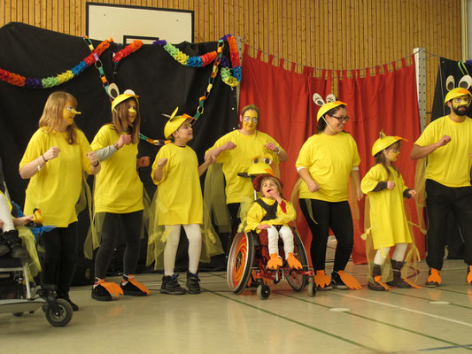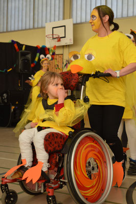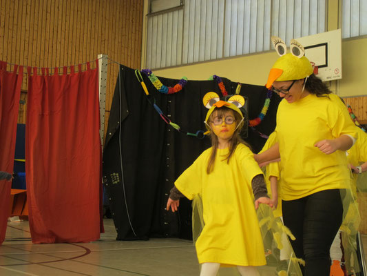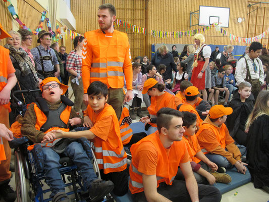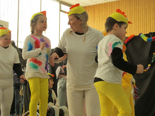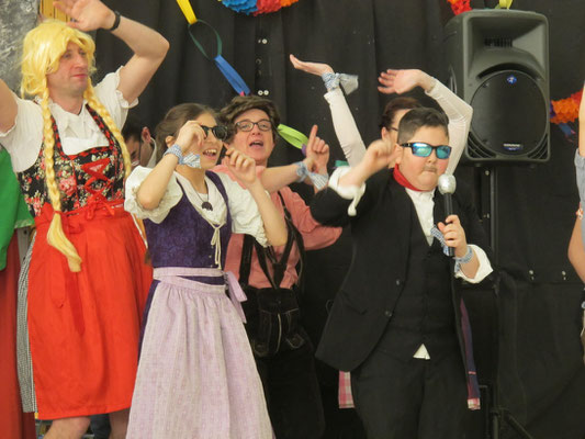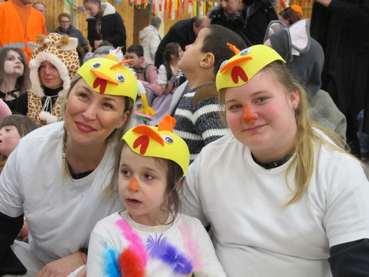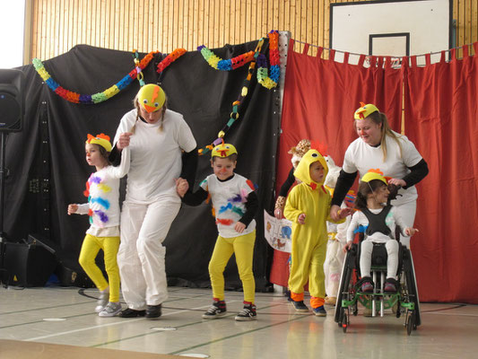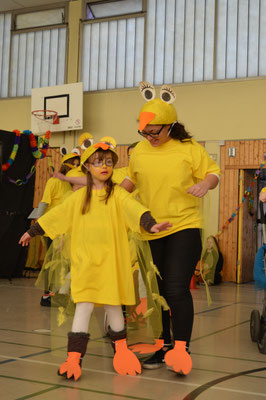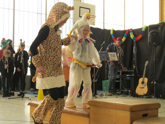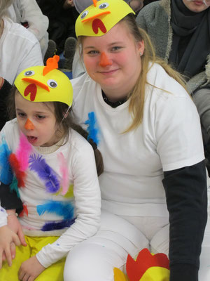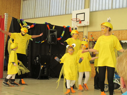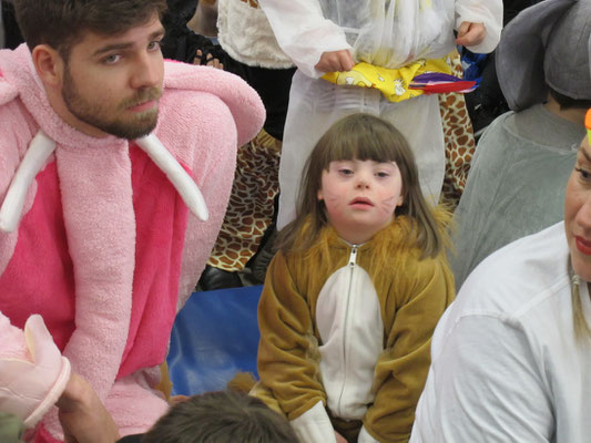 Neu für die Kinder der Vorstufen war sicherlich die Vielfalt der Kostüme und der Auftritt als Löwen und Elefanten vor einer so gro´ßen Menschengruppe.