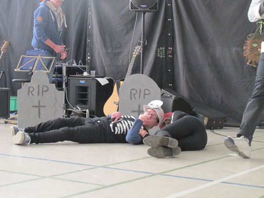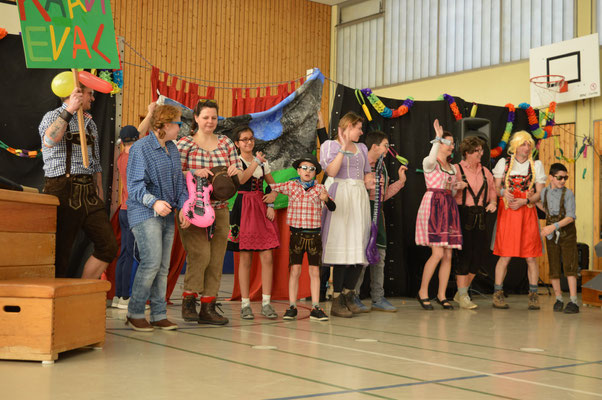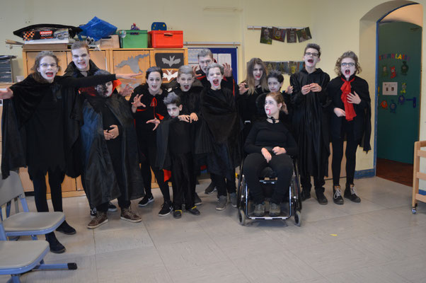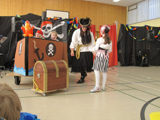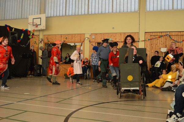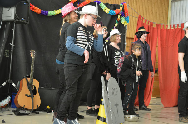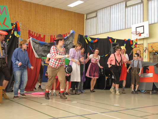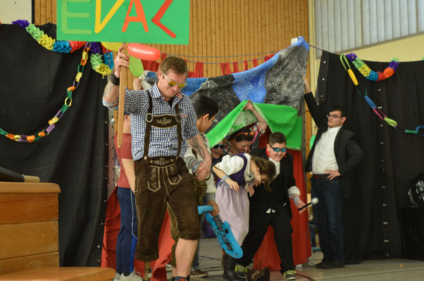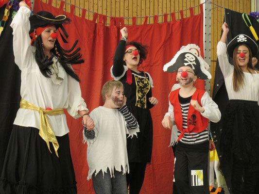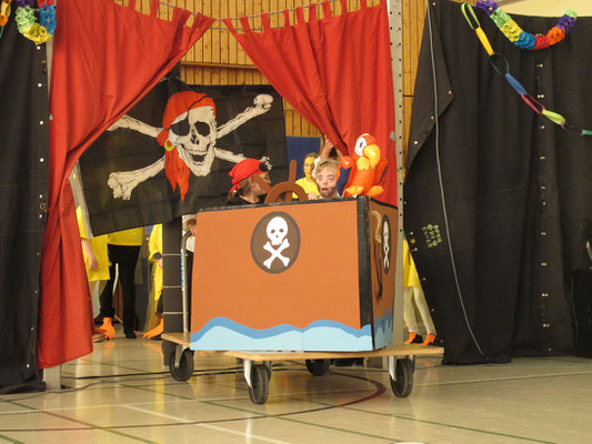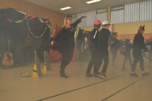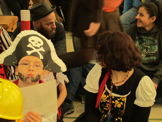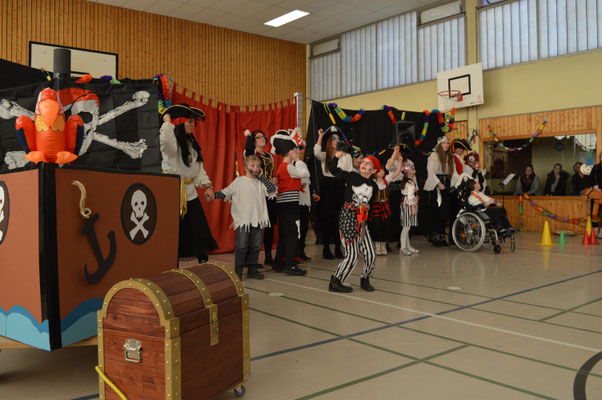 Die Hühner gackerten durch die Turnhalle, rasant dann die Fahrt mit der imposanten Eisenbahn und auch unsere Nachbarn aus Holland gaben sich die Ehre als Müllmänner. Die Vampire erschreckten uns mit einem gruseligem Schrei und Turmuhrgeläute um Mitternacht, die Piraten aus der Karibik waren mal wieder in Gladbeck-Zweckel, auch die Baumeister hatten das Schwimmbad schon längst fertig.