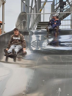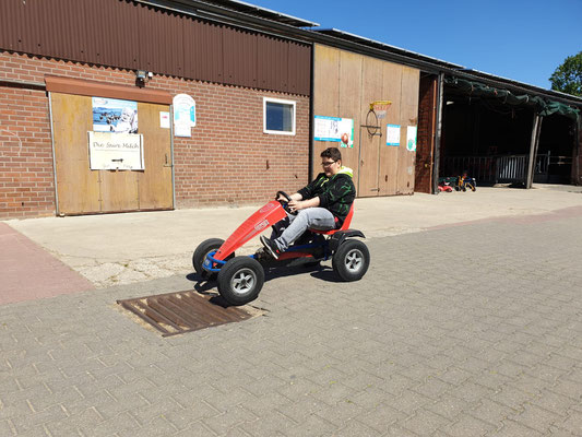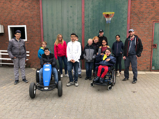 Nach Ankunft wurden zunächst die Betten bezogen, bevor schon vor dem Mittagessen die ersten Runden auf dem Kettcar gedreht wurden. Kulinarisch wurde die Mittelstufe 5 dann bestens mit Spagetti Bolognese und selbstgebackenen Kuchen verwöhnt. Danach wurde der Bauernhof unsicher gemacht. Verstecken Spielen im Heu Labyrinth, Ponys putzen, Kaninchen füttern, schaukeln, Trampolin springen und natürlich Kettcar fahren standen auf dem Programm. Am Abend wurde dann noch ein Film geschaut und Chips gegessen. Der nächste Tag führte die M 5 dann in den Freizeitpark „Irrland“. Riesenrutschen und Trampoline in allen Größen bereiteten allen viel Spaß. Am Ende ging es dann noch in die „Lufti- Schusshalle“. Mit „Kanonen“ und bunten Schaumstoffbällen konnte man sich auf dem großen Wasserbett voll auspowern. Nach diesem schönen Ausflug ging es dann zurück zum Bauernhof wo für uns gegrillt wurde. Am Abend wurde dann wieder ein Film geschaut, Chips gegessen und mehrere Partien UNO gespielt.Am dritten Tag hieß es dann leider schon wieder Koffer packen. Zuvor wurden aber noch ein paar letzte Runden auf dem Kettcar gedreht. Allen Tieren Auf Wiedersehen gesagt und die Rucksäcke nochmal kontrolliert ob sich nicht doch eine von den kleinen niedlichen Katzenjungen darin versteckt hatte 😉