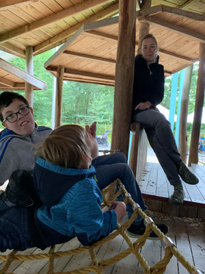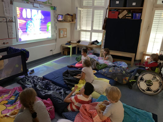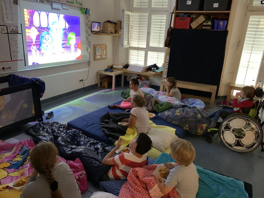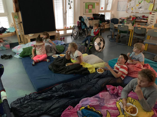 Aber das war nicht alles, denn wir sind nicht mit den Schulbussen nach Hause gefahren, sondern sind super lange im Park geblieben und haben in der Schule übernachtet.