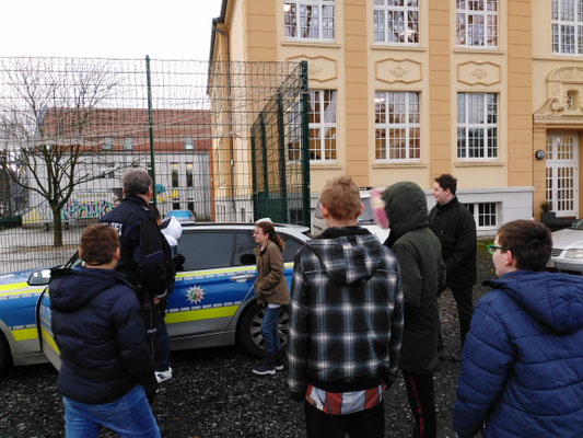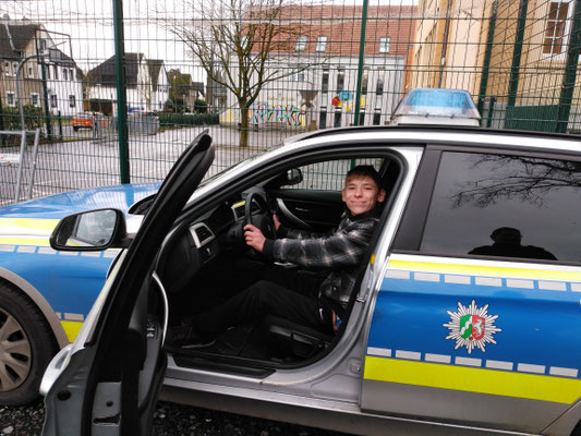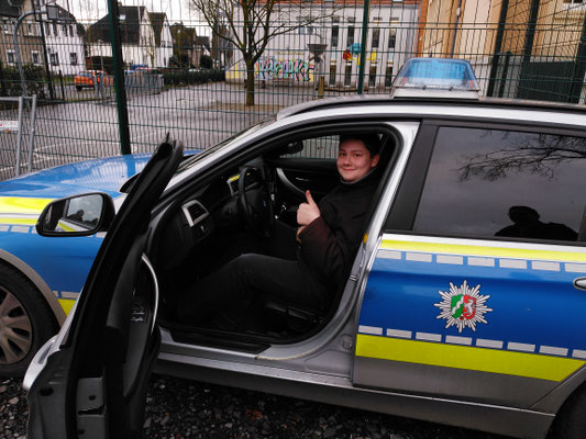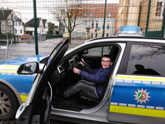 Im Rahmen unseres Vorhabens beschäftigen wir uns gerade mit der Polizei. Wir haben schon viel über die Aufgaben der Polizei gelernt. Außerdem haben wir spannende Videos zu Tieren bei der Polizei gesehen. Gestern hatten wir dann Besuch von der Polizei Gladbeck. Wir haben vorher ganz viele Fragen gesammelt, die wir den beiden Polizisten heute stellen konnten. Nachdem diese alle beantwortet waren, kam das Beste des Besuchs – wir durften alle einmal im Streifenwagen Platz nehmen, was ziemlich cool war.