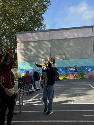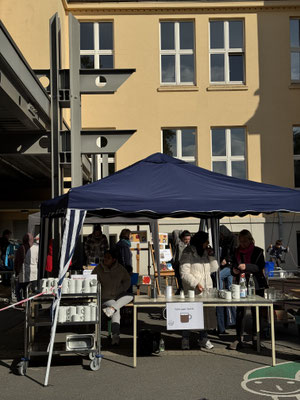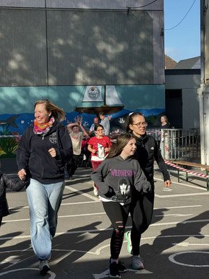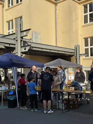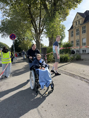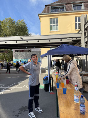 Der Förderverein sorgte mithilfe vieler Eltern mit Waffeln und Getränken für das leibliche Wohl. Das Gymnasium am Stoppenberg unterstützte die Aktion mit vielen freiwilligen Schülerinnen. Einige liefen mit, andere sorgten als motivierende Streckenposten für die Sicherheit der Teilnehmenden.