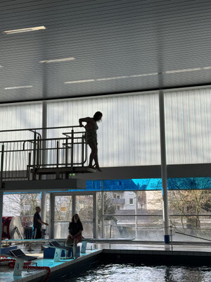 Die Schüler*innen aller Schulen zeigten ihr Können in verschiedenen Disziplinen wie Brust-, Freistil-, oder Rückenschwimmen und kreative Sprünge vom 1- sowie 3-Meter Brett. Beim Schwimmen in der Staffel belegte unsere Schule die Plätze 2 und 4. Auch in den Einzelwettbewerben konnten unsere Schüler*innen einige Urkunden absahnen.