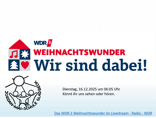 Heute morgen war es endlich soweit. Gemeinsam mit den anderen Bistumsschulen haben wir heute früh, gegen kurz vor 6 Uhr die WDR2 Weihnachtswunderbühne, das Studio und den Burgplatz in Essen eingenommen. Sabine Heinrich war sichtlich begeistert und auch sprachlos, dass so früh am Tag schon so viele Schüler: innen und Lehrkräfte bei ihr vorbei gekommen sind um ihr den Scheck mit der der unglaublichen Summe von über 27.000€ zu übergeben. Jede der 7 Bistumsschulen hat unterschiedliche...